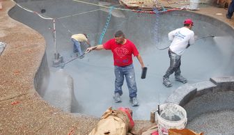 Gunite comes in a truck, much like cement. It is sprayed into the frame with a very heavy hose, and it will harden to form the permanent shell of your pool.